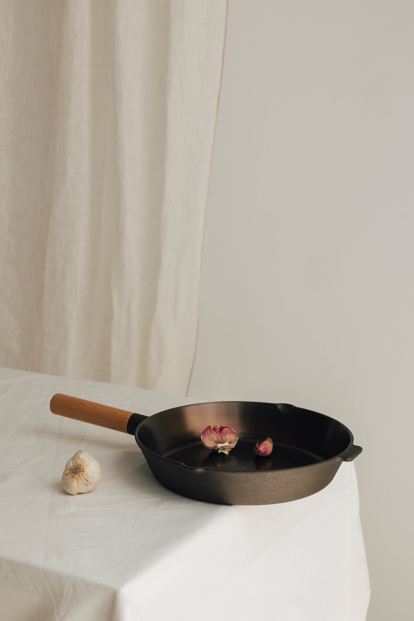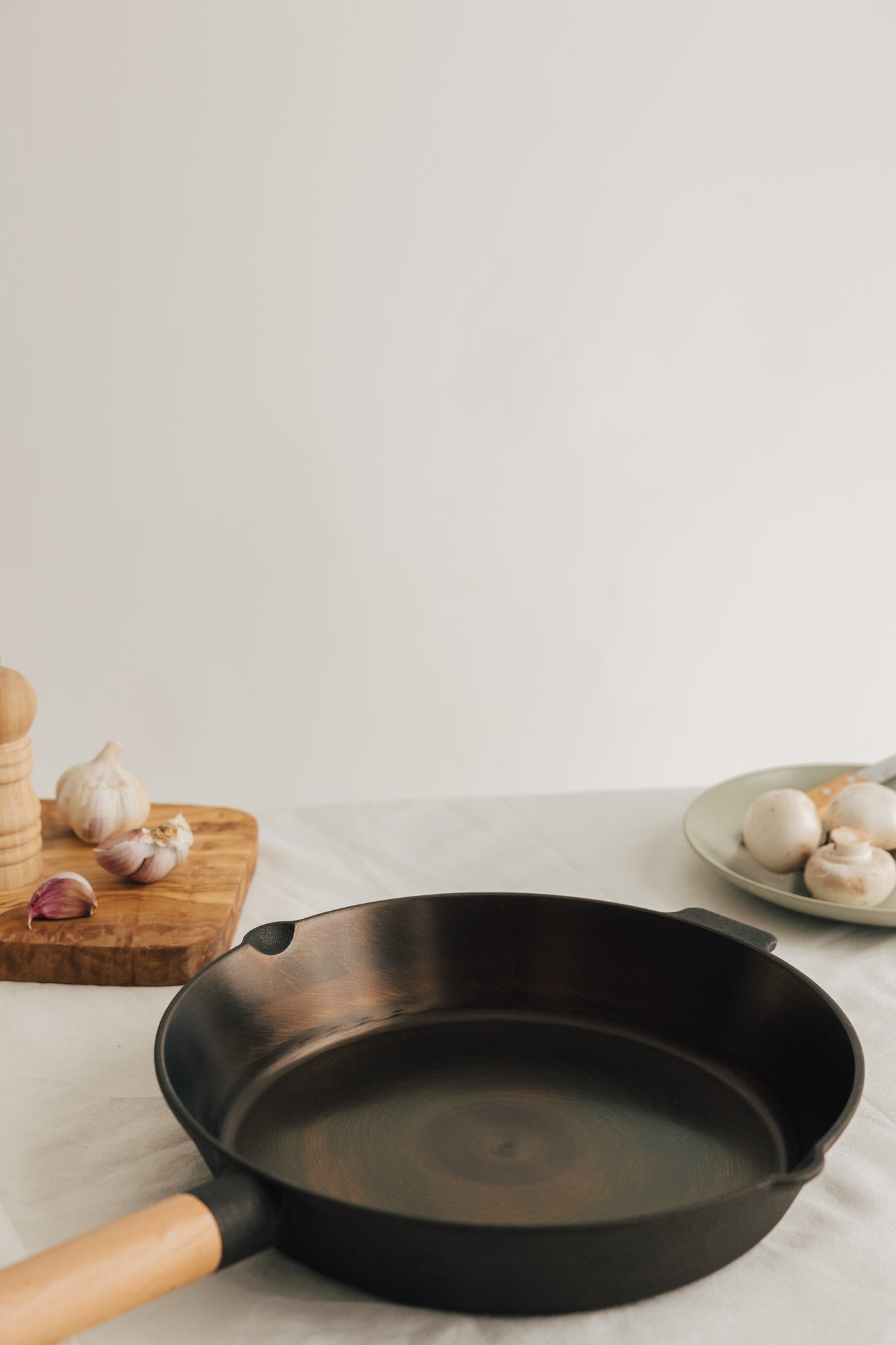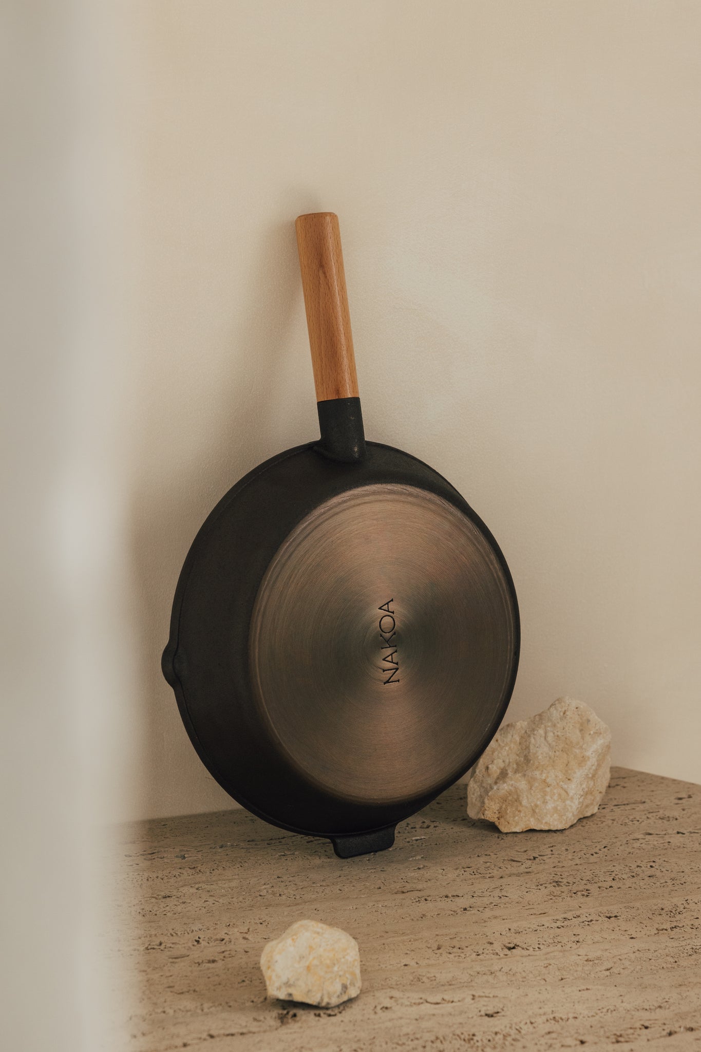Unsere polierte Gusseisen Pfanne ADIRA verbindet schönstes Design mit praktischem Finish und 0% Chemie. Für den besten Koch-Komfort ist die Pfanne mit einem Holzgriff ausgestattet, der nicht heiß wird. Zudem hat die Pfanne 28 cm Durchmesser und ist somit sowohl für eine Person oder ein Essen mit vielen geeignet. Damit du auch bei Umzügen nie wechseln musst, hält unsere Pfanne Induktion stand, und ist auch für jede andere Herdart geeignet. Die Gusseisenpfanne ist langlebig und wird mit jeder Verwendung NOCH besser.